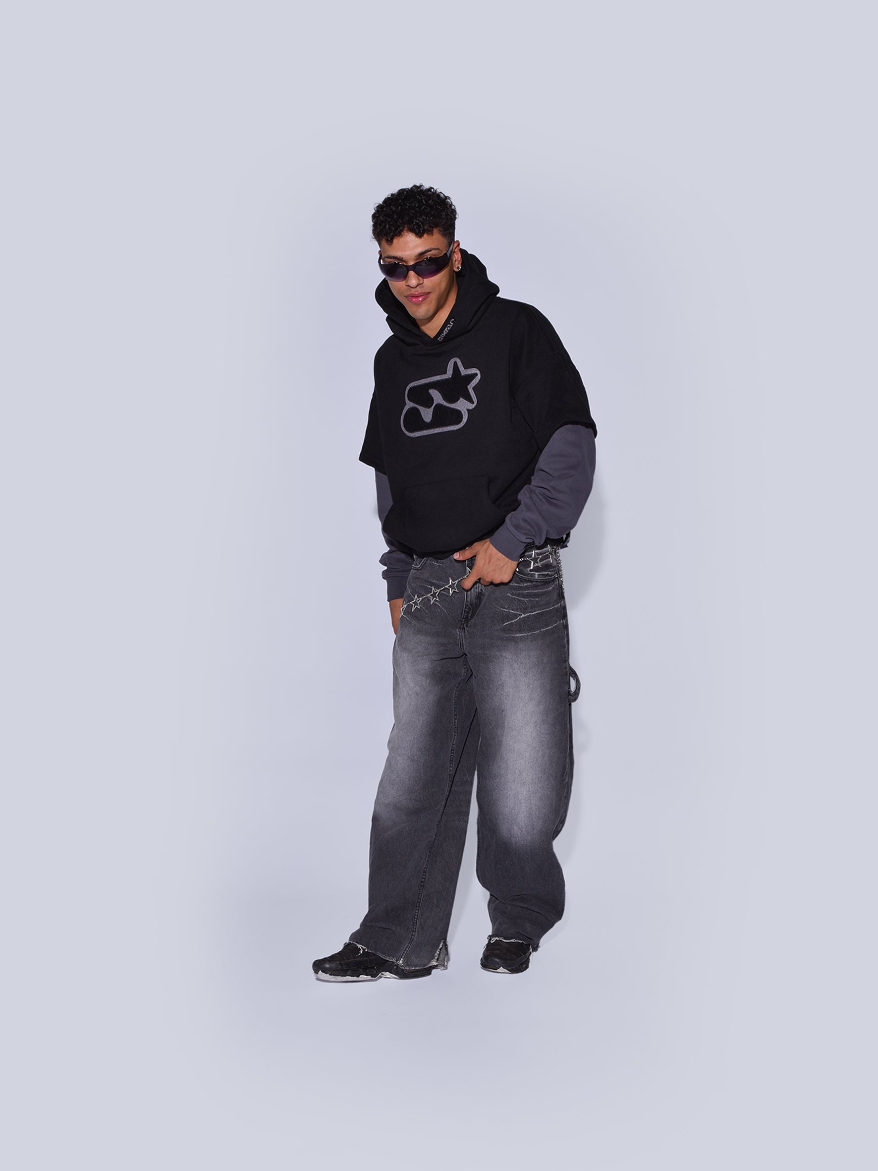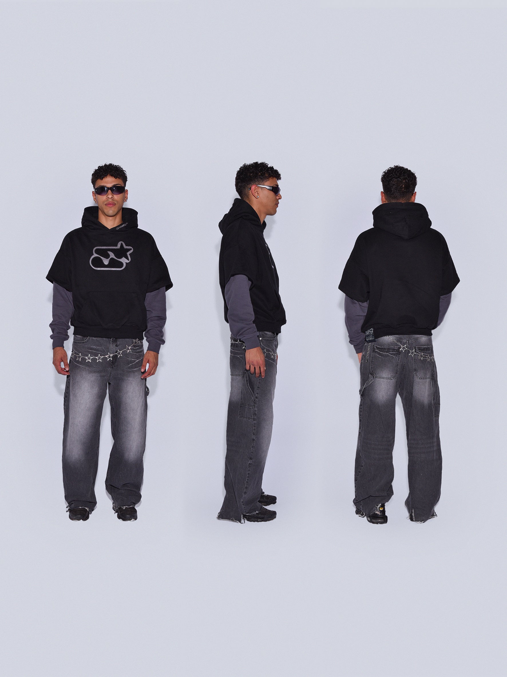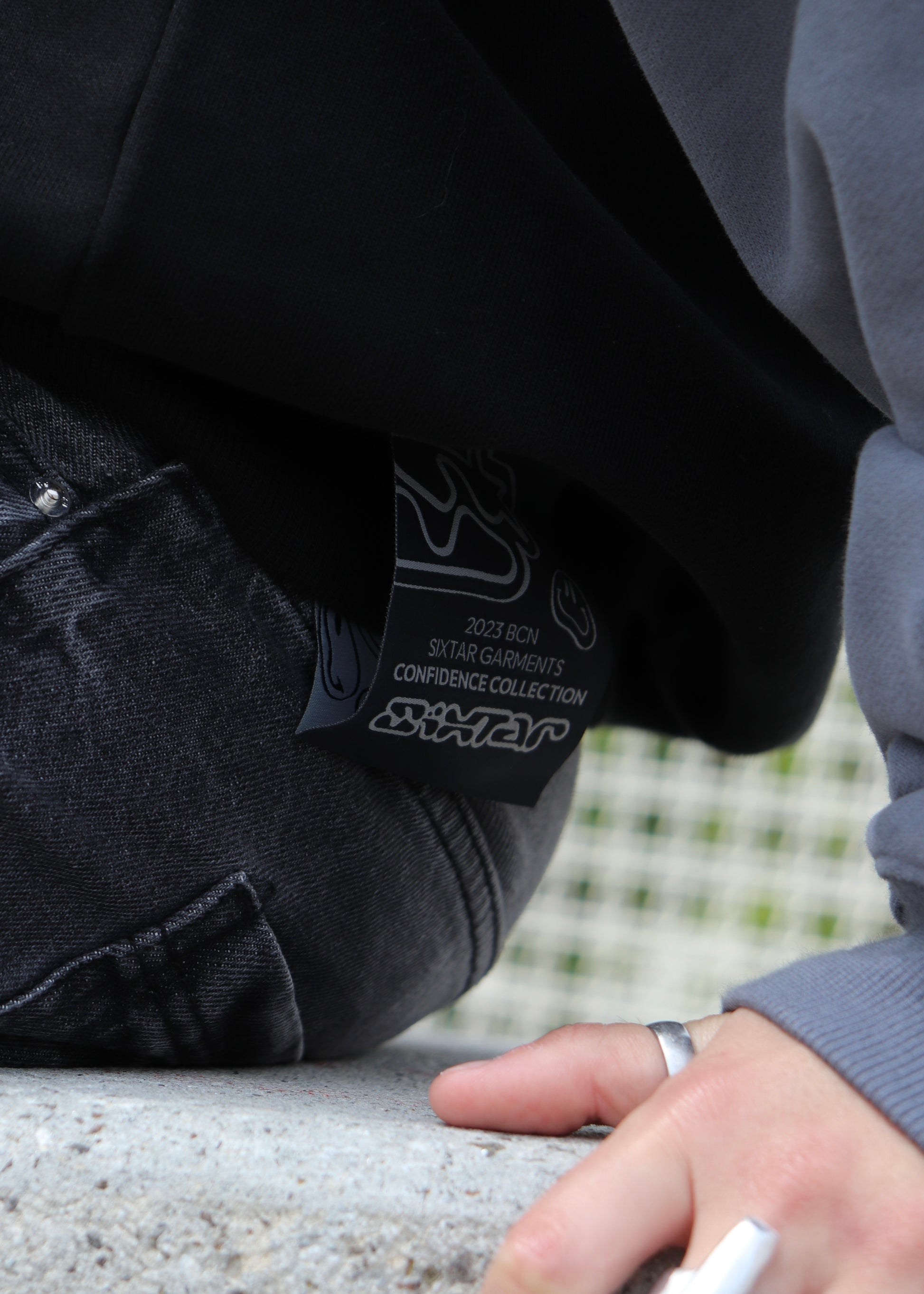 En la capucha, logotipo de "Sixtar" en bordado.